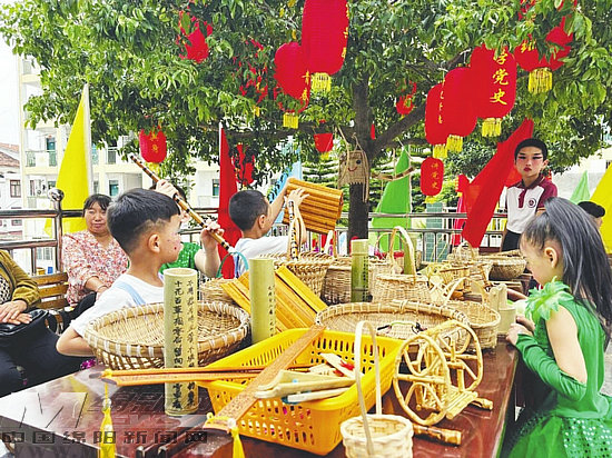 在梓潼縣黎雅小學(xué),“竹編”作品展示活動(dòng)吸引了眾多學(xué)生觀看。“今天我編織了一個(gè)簡易的小竹簍,特別有成就感。我非常喜愛竹編這門藝術(shù),它給我?guī)砹丝鞓贰?rdquo;黎雅小學(xué)學(xué)生石浩宇說。