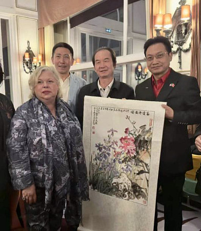 著名畫(huà)家唐新江向電影節(jié)組委會(huì)贈(zèng)送了國(guó)畫(huà)《富貴平安圖》,作品以中法兩國(guó)國(guó)花牡丹、鳶尾花為主,寓意中法友誼如花常艷,東西方文明相親相融。