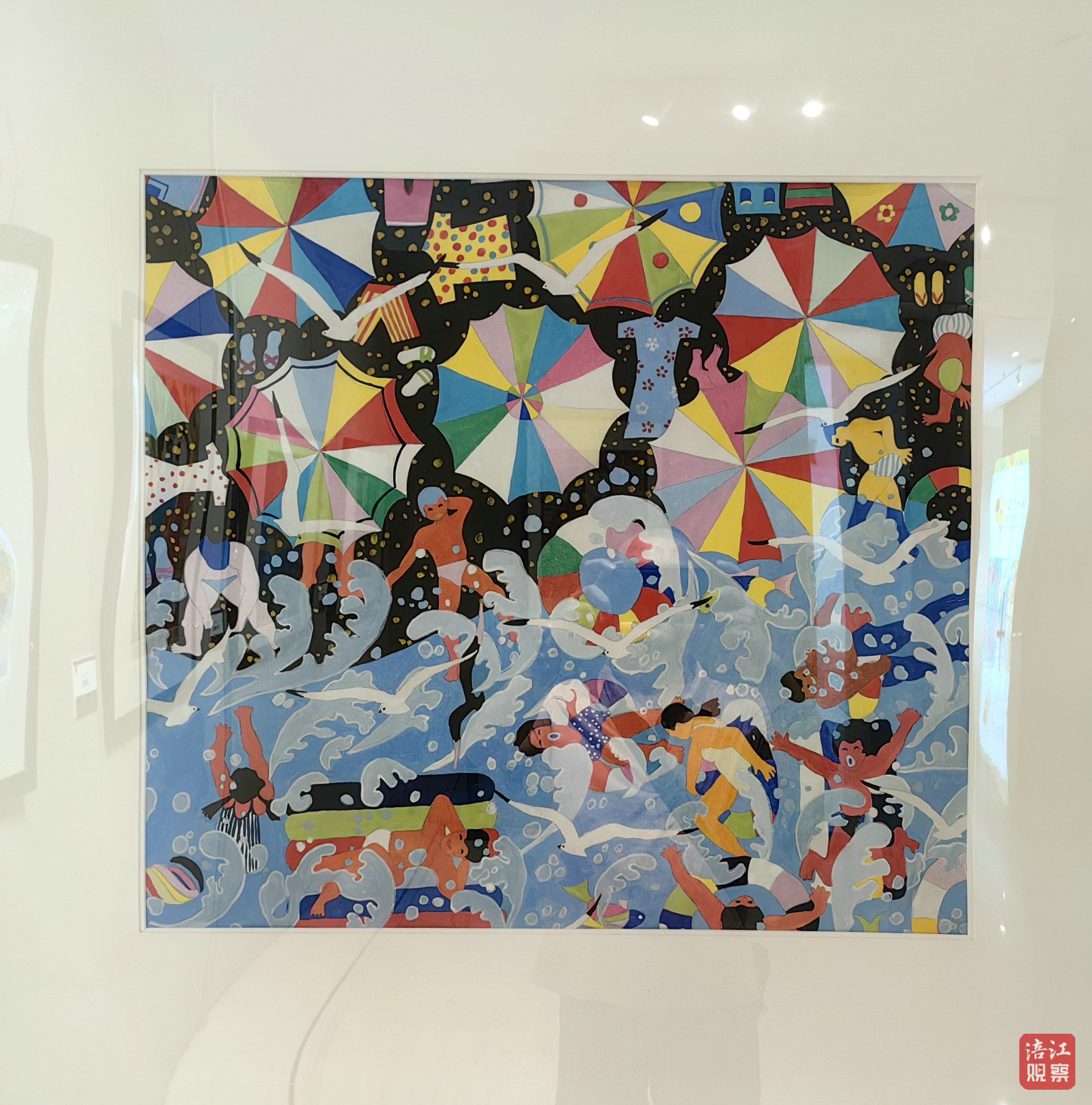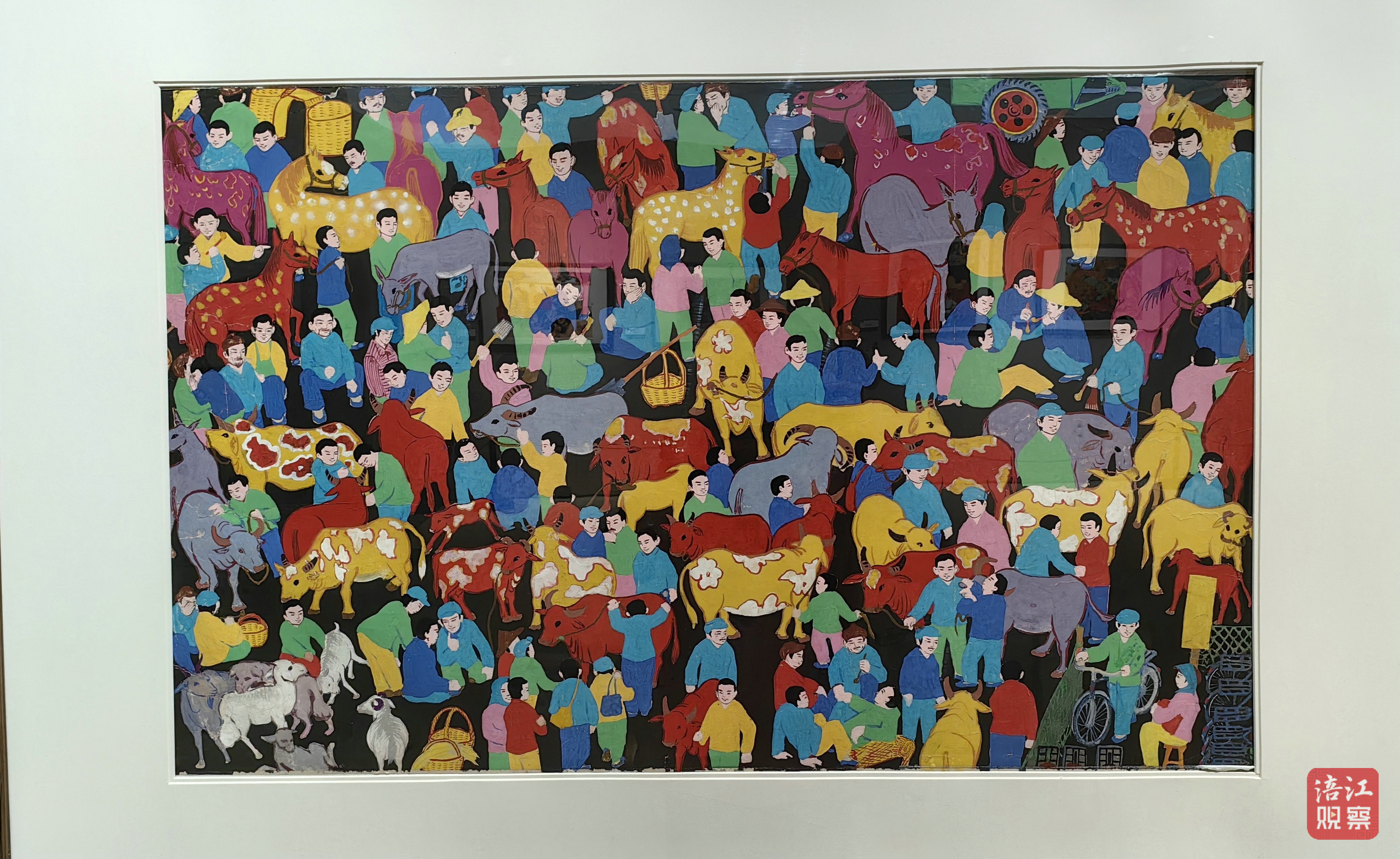 展覽的作品內(nèi)容豐富、構(gòu)圖飽滿、色彩艷麗,風(fēng)格自然活潑、浪漫稚拙,表達(dá)出人們追求幸福美好生活的樸實情感。