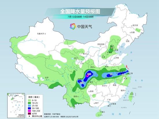 明天夜間開始,副熱帶高壓又將出現(xiàn)北抬趨勢,主雨帶也會隨之北抬至四川盆地到華北、黃淮一帶。預計14日至16日,四川盆地、西北地區(qū)東南部、黃淮、華北中南部、東北地區(qū)南部等地將出現(xiàn)一次強降雨過程。