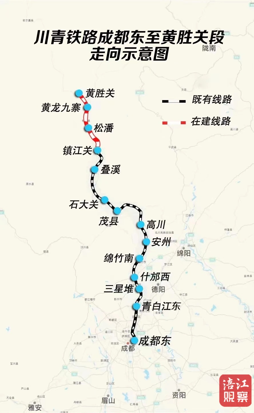 據(jù)介紹,川青鐵路鎮(zhèn)江關(guān)至黃勝關(guān)段設(shè)計(jì)時(shí)速200公里,為國家Ⅰ級(jí)雙線鐵路。全線共設(shè)4個(gè)車站,分別為鎮(zhèn)江關(guān)、松潘、黃龍九寨和黃勝關(guān)站,其中鎮(zhèn)江關(guān)站為既有車站,其余為新建車站。