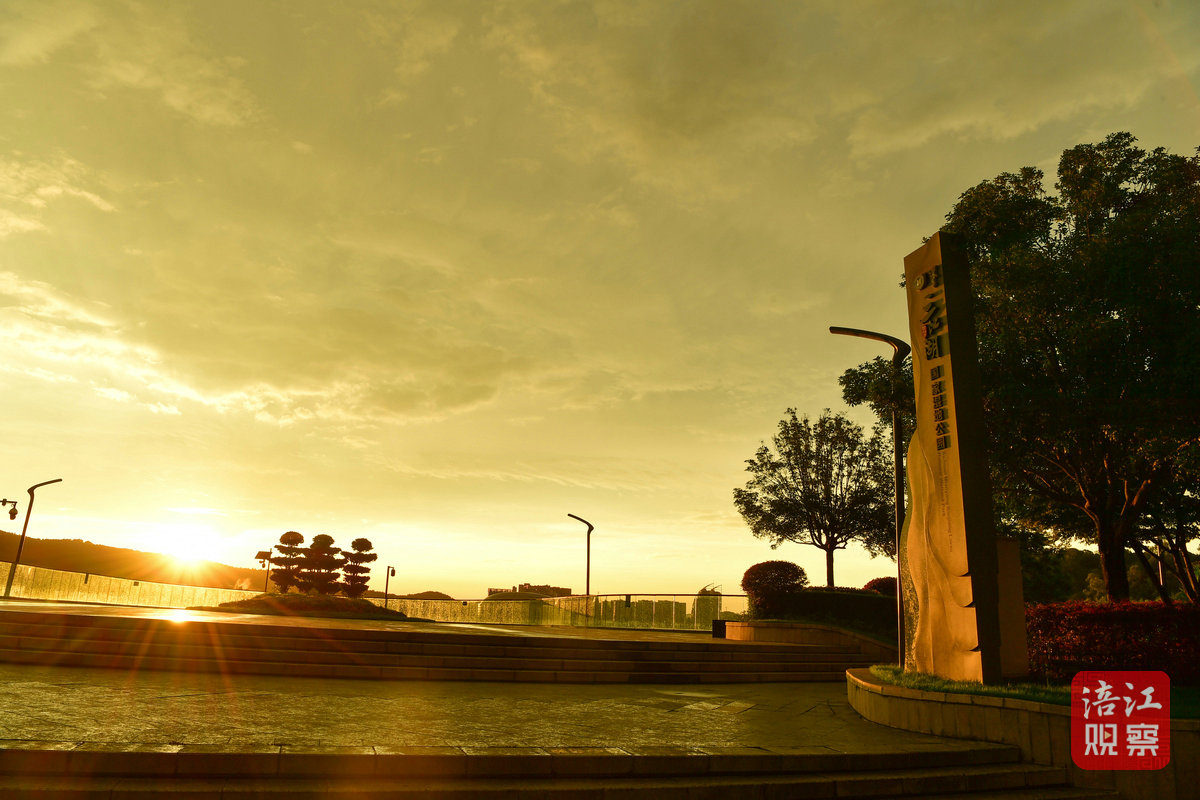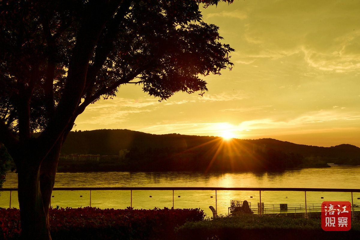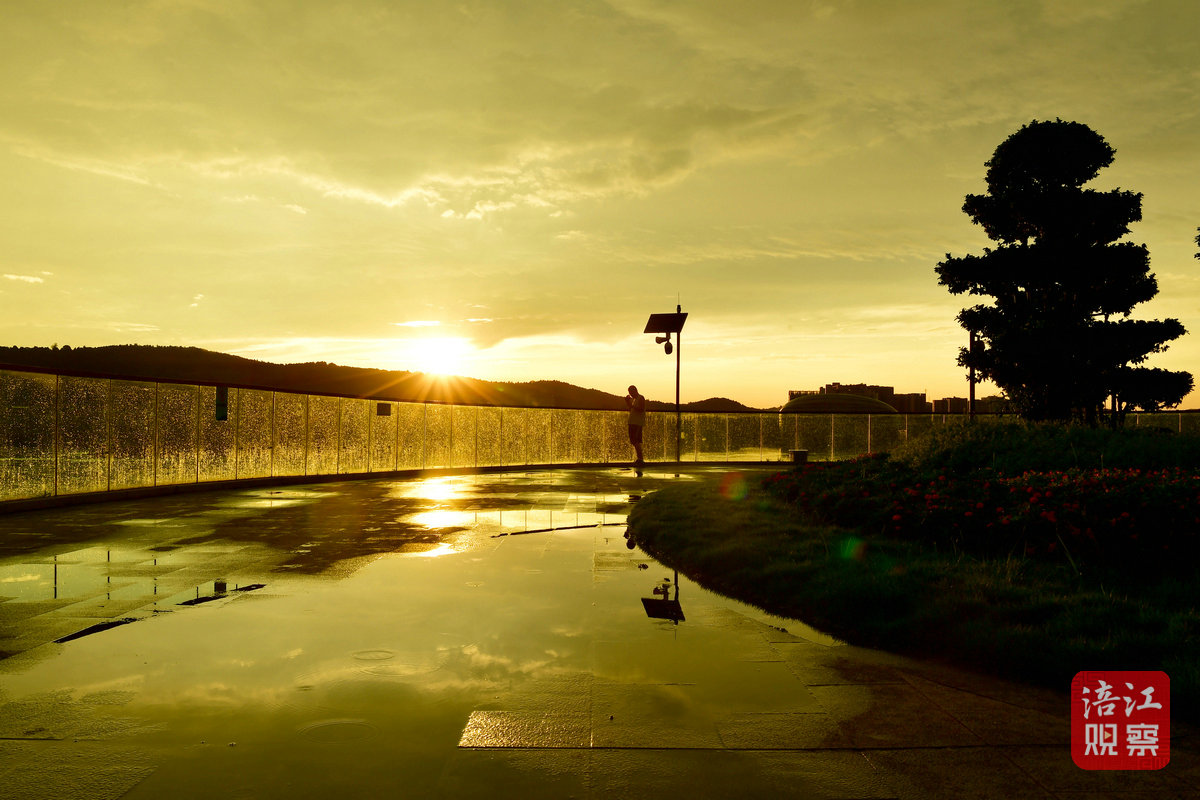 7月22日早上6時(shí)許,初升的太陽從東方冉冉升起,一時(shí)間霞光萬丈,把綿陽城區(qū)三江湖兩岸的樓宇、樹木、健身步道染上了一層金黃色,與短暫出現(xiàn)的彩虹相映成景,美不勝收。
