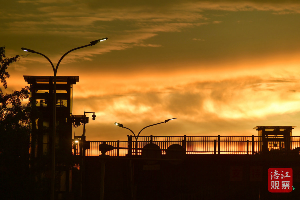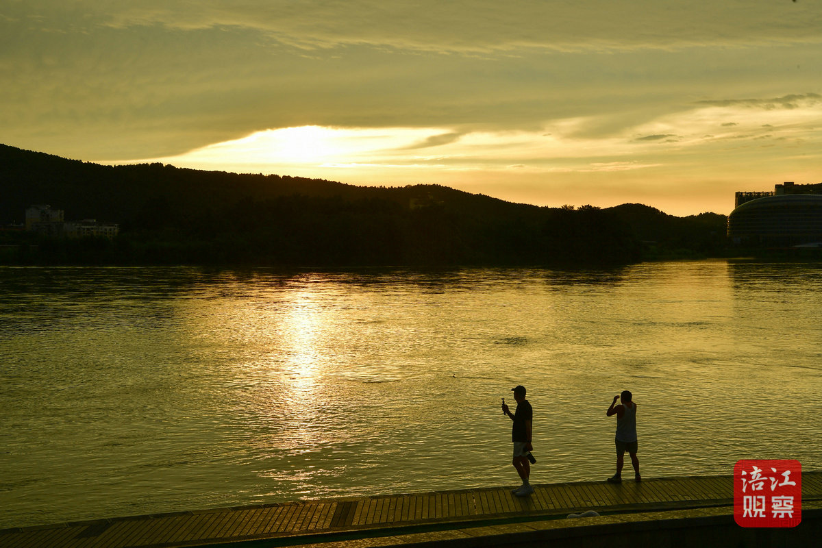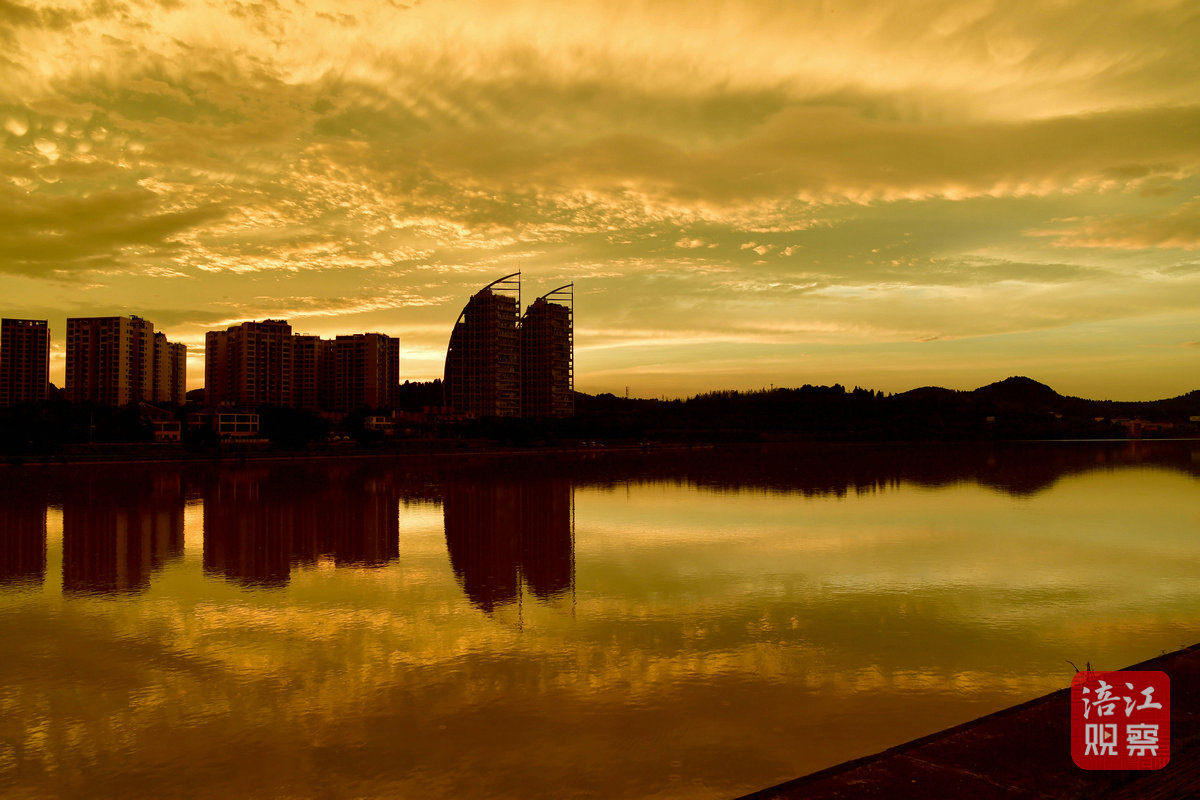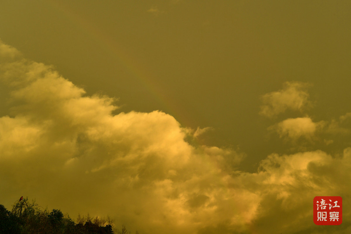 7月22日早上6時(shí)許,初升的太陽從東方冉冉升起,一時(shí)間霞光萬丈,把綿陽城區(qū)三江湖兩岸的樓宇、樹木、健身步道染上了一層金黃色,與短暫出現(xiàn)的彩虹相映成景,美不勝收。