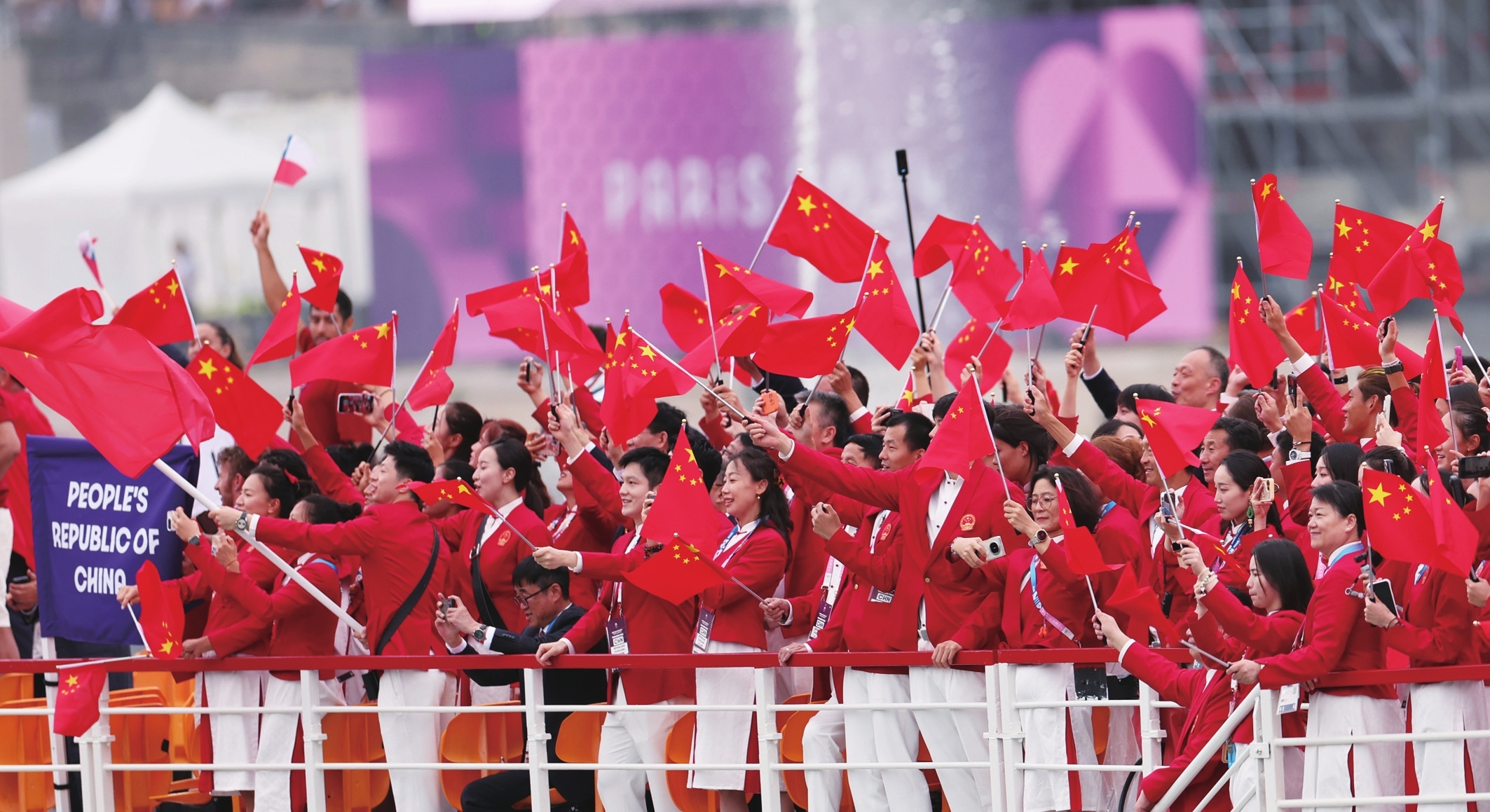 7月26日,中國(guó)體育代表團(tuán)在第三十三屆夏季奧林匹克運(yùn)動(dòng)會(huì)開幕式上。(新華社記者郭昱攝)