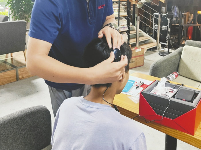 “現(xiàn)在有聲音嗎?”“有!”7月29日,美笛樂(lè)聽(tīng)力植入技術(shù)服務(wù)有限公司四川辦事處專(zhuān)業(yè)技術(shù)人員黃良威來(lái)到綿陽(yáng),為丟失人工耳蝸的少年小峰(化名)佩戴上了新外機(jī),并教小峰如何使用和保養(yǎng)。