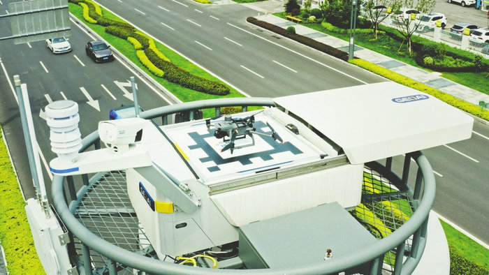為什么要將“機(jī)場(chǎng)”建在路燈桿上?據(jù)四川新投智城科技有限公司研發(fā)設(shè)計(jì)經(jīng)理劉家文介紹,這既是為了提高無(wú)人機(jī)的執(zhí)飛效率,也是利用現(xiàn)有基礎(chǔ)設(shè)施,節(jié)省城市空間,實(shí)現(xiàn)低空“執(zhí)勤”。這便是“天空地”一體化系統(tǒng)中“空”的重要組成部分,它負(fù)責(zé)承擔(dān)起銜接“天”與“地”間交辦的任務(wù)。
