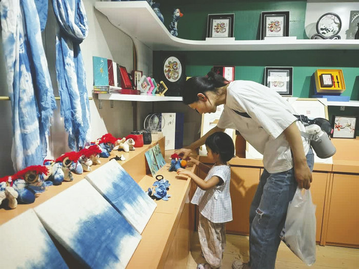 展臺(tái)內(nèi)的各種文創(chuàng)產(chǎn)品讓人應(yīng)接不暇,剪紙、蜀繡、董氏扎染等非遺產(chǎn)品,種類(lèi)多達(dá)幾十種。