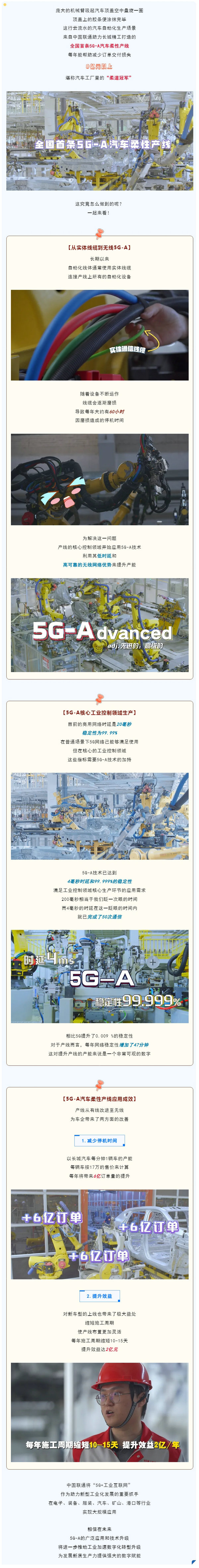 龐大的機(jī)械臂吸起汽車頂蓋空中盤旋一圈,頂蓋上的膠條便涂抹完畢,這行云流水的汽車自動(dòng)化生產(chǎn)場(chǎng)景來自中國聯(lián)通助力長城精工打造的全國首條5G-A汽車柔性產(chǎn)線每年能幫助減少訂單交付損失8億元以上。 堪稱汽車工廠里的“柔道冠軍”