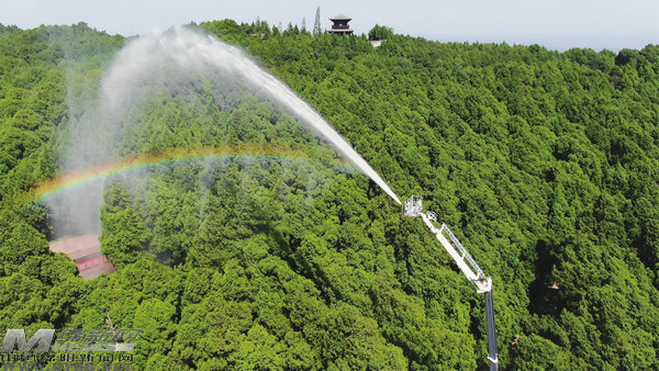 綿陽新聞網(wǎng)訊 灑水降溫“向云端”,高度45米,射程100米!8月14日,梓潼七曲山專職消防救援站通過登高平臺消防車對翠云廊古柏降溫增濕。