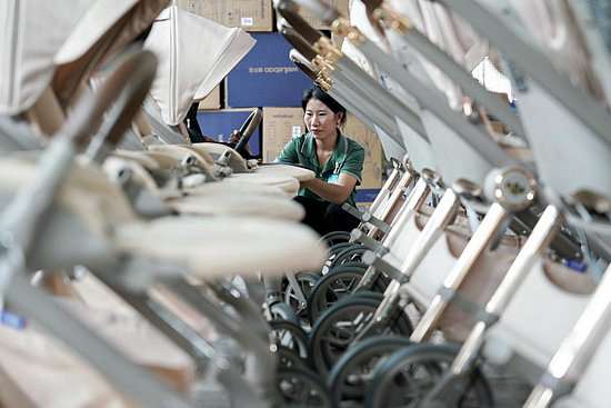8月19日,河北省平鄉(xiāng)縣一家童車生產(chǎn)企業(yè)的員工在車間內(nèi)工作。 新華社記者 牟宇 攝