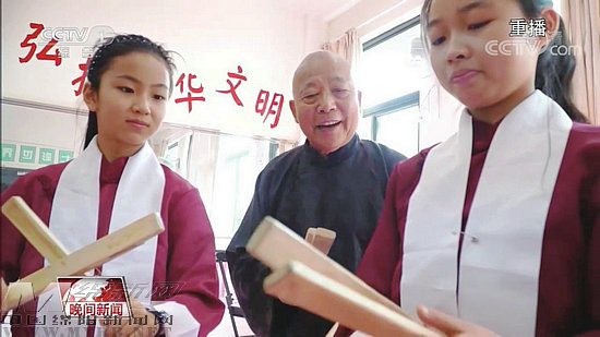 央視報道李詩吉傳承推廣金錢板(視頻截圖)