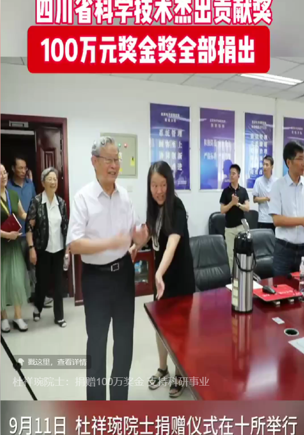 杜祥琬院士:捐贈100萬獎金支持科研事業(yè)
