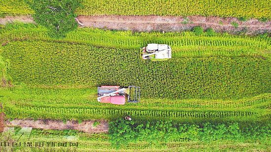 綿陽新聞網訊 金秋九月,稻谷飄香。在涪城區(qū)吳家鎮(zhèn)石洞河村8組的稻田里,稻浪翻滾、機聲隆隆,水稻收割機在黃綠交織的田間來回穿梭(如圖),將一茬茬飽滿的稻穗“吃”進“腹”中,割穗、脫粒、排草……20多分鐘,收割機就“吃飽”回到田邊,一顆顆金黃的稻谷從收割機出糧口傾瀉而下。