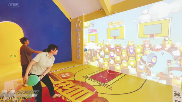 游客在“未來運(yùn)動(dòng)場(chǎng)”體驗(yàn)虛擬投籃比賽