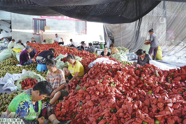 果農(nóng)們忙著拆袋、分揀、篩選獼猴桃