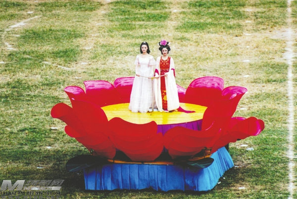 在綿陽舉行的第四屆全國農(nóng)民運(yùn)動會開幕式上,中國戲劇梅花獎得主喻海燕、蔣淑梅同臺獻(xiàn)藝。(曾巨光攝于2000年)