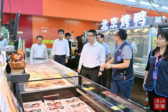 “菜籃子”供應(yīng)保障事關(guān)千家萬戶。沃爾瑪超市公園店各種商品琳瑯滿目。李云邊走邊詳細詢問商品價格、物資供應(yīng)、食品安全等情況,檢查超市消防設(shè)施器材配備、安全通道設(shè)置,并現(xiàn)場抽查工作人員操作滅火器的熟練程度。他強調(diào),要進一步暢通供應(yīng)渠道,豐富商品種類,保持價格穩(wěn)定,嚴把食品質(zhì)量安全關(guān)口,常態(tài)化開展消防滅火技能和逃生疏散演練,讓廣大群眾“安心吃”“放心購”;要更大力度開展系列消費促進活動,不斷豐富消費業(yè)態(tài)、提高商圈品質(zhì),更好滿足群眾多元消費需求。
