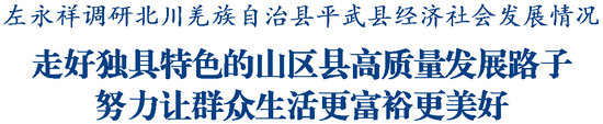 調(diào)研過(guò)程中,左永祥聽(tīng)取了兩縣貫徹落實(shí)中央和省委經(jīng)濟(jì)工作會(huì)議精神、市委八屆九次全會(huì)精神,以及今年工作打算等情況匯報(bào),對(duì)取得的工作成效給予肯定。他強(qiáng)調(diào),北川和平武都屬于山區(qū)縣,發(fā)展縣域經(jīng)濟(jì)大有可為,也要有大作為,要找準(zhǔn)定位,聚焦用力,立足資源稟賦,發(fā)揮比較優(yōu)勢(shì),強(qiáng)化改革賦能,切實(shí)把獨(dú)特的民族文化特色、優(yōu)良的山水生態(tài)資源轉(zhuǎn)化為現(xiàn)實(shí)生產(chǎn)力和發(fā)展競(jìng)爭(zhēng)力,以?shī)^發(fā)有為的精神狀態(tài)推動(dòng)各項(xiàng)工作邁上新臺(tái)階。要樹(shù)立生態(tài)優(yōu)先綠色發(fā)展理念,扎實(shí)抓好生態(tài)修復(fù)和環(huán)境保護(hù),堅(jiān)持產(chǎn)業(yè)生態(tài)化、生態(tài)產(chǎn)業(yè)化,高質(zhì)量推進(jìn)“森林四庫(kù)”建設(shè),不斷培育壯大綠色低碳優(yōu)勢(shì)產(chǎn)業(yè),推進(jìn)人與自然和諧共生的現(xiàn)代化。要做實(shí)做好文旅融合、農(nóng)旅融合文章,將文化遺跡、特色建筑、民間技藝、山水風(fēng)光等文旅IP資源進(jìn)行深入挖掘開(kāi)發(fā),形成新的經(jīng)濟(jì)增長(zhǎng)點(diǎn)。要扎實(shí)做好歲末年初各項(xiàng)工作,用心用情做好民生保障,全面加強(qiáng)重點(diǎn)領(lǐng)域安全生產(chǎn)和森林草原防滅火工作,堅(jiān)決消除各類安全隱患,多措并舉強(qiáng)化基層應(yīng)急能力建設(shè)和實(shí)戰(zhàn)化演練,切實(shí)提高防災(zāi)減災(zāi)救災(zāi)能力,以高水平安全保障高質(zhì)量發(fā)展。要堅(jiān)持大抓基層的鮮明導(dǎo)向,樹(shù)牢“抓與不抓完全不一樣”理念,充分發(fā)揮黨建的引領(lǐng)力、凝聚力、戰(zhàn)斗力,完善提升網(wǎng)格化治理,從嚴(yán)從實(shí)抓好干部隊(duì)伍建設(shè),培養(yǎng)務(wù)實(shí)過(guò)硬作風(fēng),激發(fā)擔(dān)當(dāng)作為、干事創(chuàng)業(yè)的精氣神,更好服務(wù)基層、服務(wù)群眾。