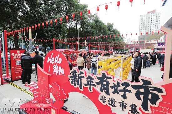 綿陽(yáng)城區(qū)凱德廣場(chǎng)“新年有好市”非遺市集吸引市民前來(lái)體驗(yàn)(記者 胥江 攝)