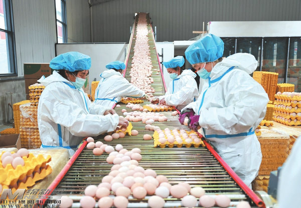 圖為雞蛋分揀包裝工序,員工們正在分揀雞蛋,待入庫后發(fā)往超市等市場銷售。(記者 賴杰 蒲滔 攝影報道)