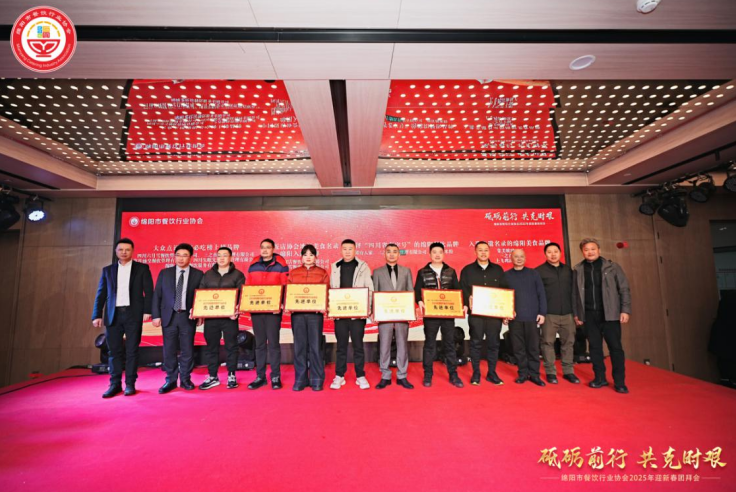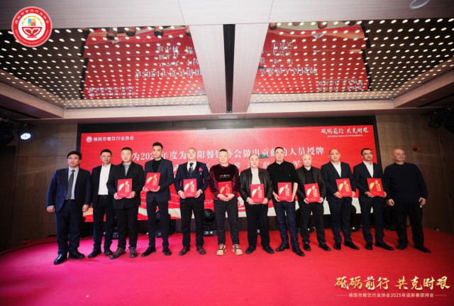 2024年度為綿陽(yáng)餐飲協(xié)會(huì)做出貢獻(xiàn)的人物頒獎(jiǎng)授牌。
