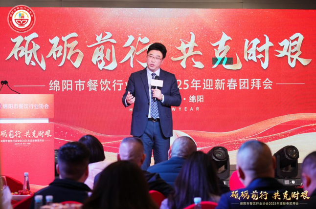 最后,綿陽(yáng)市餐飲行業(yè)協(xié)會(huì)會(huì)長(zhǎng)黎云松上臺(tái)做年度總結(jié)發(fā)言。黎會(huì)長(zhǎng)說(shuō),今年的主題是“砥礪前行,共克時(shí)艱”。2024年,餐飲行業(yè)經(jīng)歷了巨大的挑戰(zhàn),正是這樣艱難的時(shí)刻,更需要我們共克時(shí)艱,團(tuán)結(jié)一致,抱團(tuán)發(fā)展。2025年餐飲行業(yè)要將創(chuàng)新改革進(jìn)行到底。為此,我們希望各餐飲企業(yè)聚心聚力,在協(xié)會(huì)的帶動(dòng)下,不斷拓寬、拓展自身邊界。我們希望為消費(fèi)者提供更為豐富的美食體驗(yàn),獲得更好的口碑、更高的流量,讓綿陽(yáng)餐飲品牌走出四川,叫得更響亮。1月23日將進(jìn)行《微利時(shí)代下的突圍之路》主題分享,敬請(qǐng)期待。