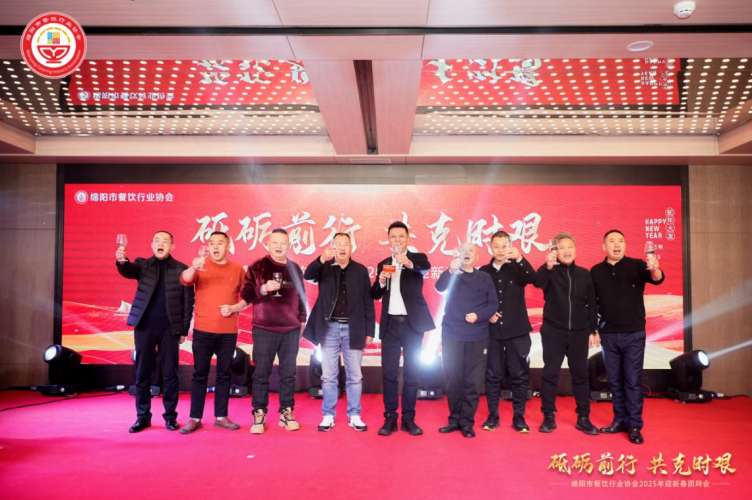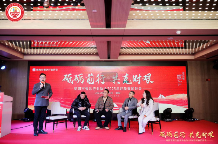 1月8日,“砥礪前行 共克時(shí)艱”綿陽(yáng)市餐飲行業(yè)協(xié)會(huì)2025年迎新春團(tuán)拜會(huì)在紐菲特酒店舉行。綿陽(yáng)市商務(wù)局、綿陽(yáng)市市場(chǎng)監(jiān)督管理局、平武縣農(nóng)業(yè)農(nóng)村局、綿陽(yáng)市商務(wù)協(xié)會(huì)、遠(yuǎn)大集團(tuán)、招商銀行、鐵騎力士等領(lǐng)導(dǎo),以及綿陽(yáng)市餐飲行業(yè)各界人士近300人參加。