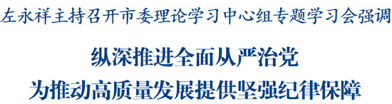 綿陽新聞網(wǎng)訊 按照黨中央和省委關(guān)于開好民主生活會的有關(guān)要求,1月9日,市委理論學(xué)習(xí)中心組舉行專題學(xué)習(xí)會,集中學(xué)習(xí)習(xí)近平總書記關(guān)于黨的建設(shè)的重要思想、關(guān)于黨的自我革命的重要思想、關(guān)于全面加強黨的紀律建設(shè)的重要論述和在中央政治局民主生活會、二十屆中央紀委四次全會上的重要講話精神等,副省長、市委書記左永祥主持會議并談?wù)J識體會。他強調(diào),要認真落實黨中央決策部署和省委工作要求,嚴明紀律規(guī)矩、嚴抓紀律教育、嚴格紀律執(zhí)行,持續(xù)鞏固深化黨紀學(xué)習(xí)教育成果,縱深推進全面從嚴治黨,為推動高質(zhì)量發(fā)展提供堅強紀律保障。