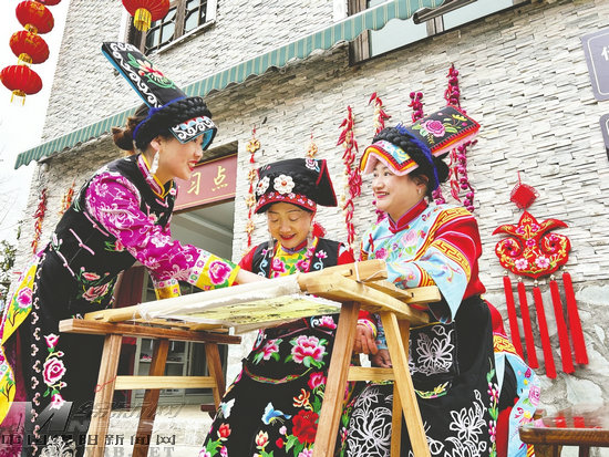 羌繡非遺傳承人陳云珍向村民傳授羌繡技藝