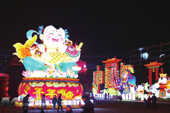 記者在現(xiàn)場看到,最引人注目的要數(shù)“芙蓉仙子”燈組,以芙蓉溪的美麗傳說為創(chuàng)意來源,用擬人化的方式展現(xiàn)出芙蓉溪的美麗,15米高的芙蓉仙子身著粉綠傳統(tǒng)服飾,宛如花中仙子降臨。周圍9個身著不同朝代服飾的小仙子相映成趣,在夜空下璀璨奪目。同時,“芙蓉仙子”也是一個獨具特色的燈組,用10余萬個藥瓶捆扎組成的巨型藥瓶燈組十分驚艷,不僅環(huán)保,也展現(xiàn)出彩燈藝術中萬物皆可燈的精湛技藝。