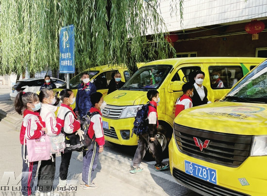 金通工程,紅領(lǐng)巾專車接送學生。