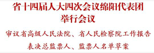 綿陽新聞網(wǎng)成都專電 1月23日,省十四屆人大四次會(huì)議綿陽代表團(tuán)在駐地舉行第六次、第七次會(huì)議,審議省高級(jí)人民法院、省人民檢察院工作報(bào)告;表決總監(jiān)票人、監(jiān)票人名單草案;繼續(xù)醞釀?dòng)嘘P(guān)候選人名單草案;繼續(xù)審議省政府工作報(bào)告和省人大常委會(huì)工作報(bào)告。