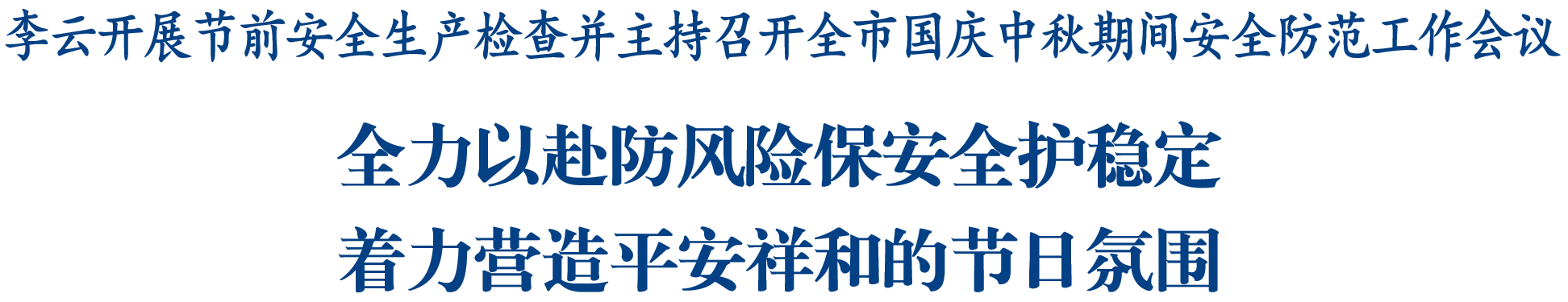 9月30日,市委副書記、市長李云前往城區(qū)開展節(jié)前安全生產(chǎn)檢查并主持召開全市國慶中秋期間安全防范工作會議,強(qiáng)調(diào)要深入學(xué)習(xí)貫徹習(xí)近平總書記關(guān)于安全生產(chǎn)的重要論述,認(rèn)真落實(shí)省安委會2025年第四次全體會議暨全省安全生產(chǎn)、森林草原防滅火工作視頻會議精神,全力以赴防風(fēng)險、保安全、護(hù)穩(wěn)定,著力營造平安祥和的節(jié)日氛圍?! ?/p>