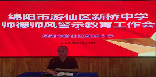 綿陽(yáng)新聞網(wǎng)訊 為了進(jìn)一步加強(qiáng)師德師風(fēng)建設(shè),強(qiáng)化教師思想政治教育和職業(yè)道德規(guī)范,筑牢師德底線,營(yíng)造風(fēng)清氣正的育人環(huán)境,9月29日,游仙區(qū)新橋中學(xué)召開(kāi)了以“堅(jiān)守師德底線 做有德有為的人民教師”為主題的2025年秋師德師風(fēng)警示教育工作會(huì)。會(huì)議由該校黨支部書(shū)記、校長(zhǎng)唐旭東主持。