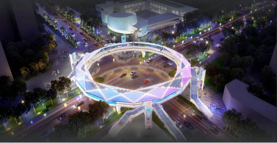 方案一為環(huán)形人行天橋