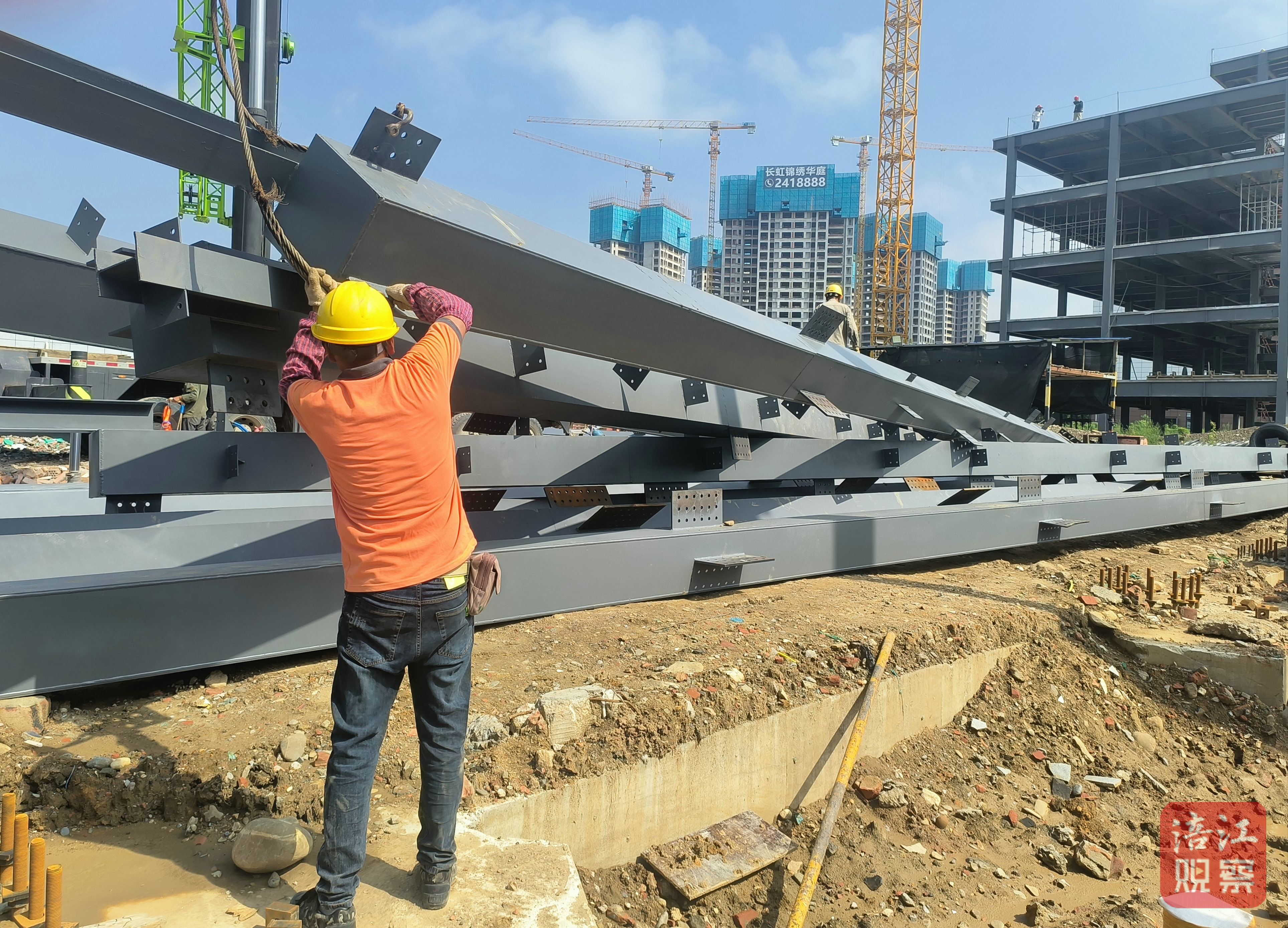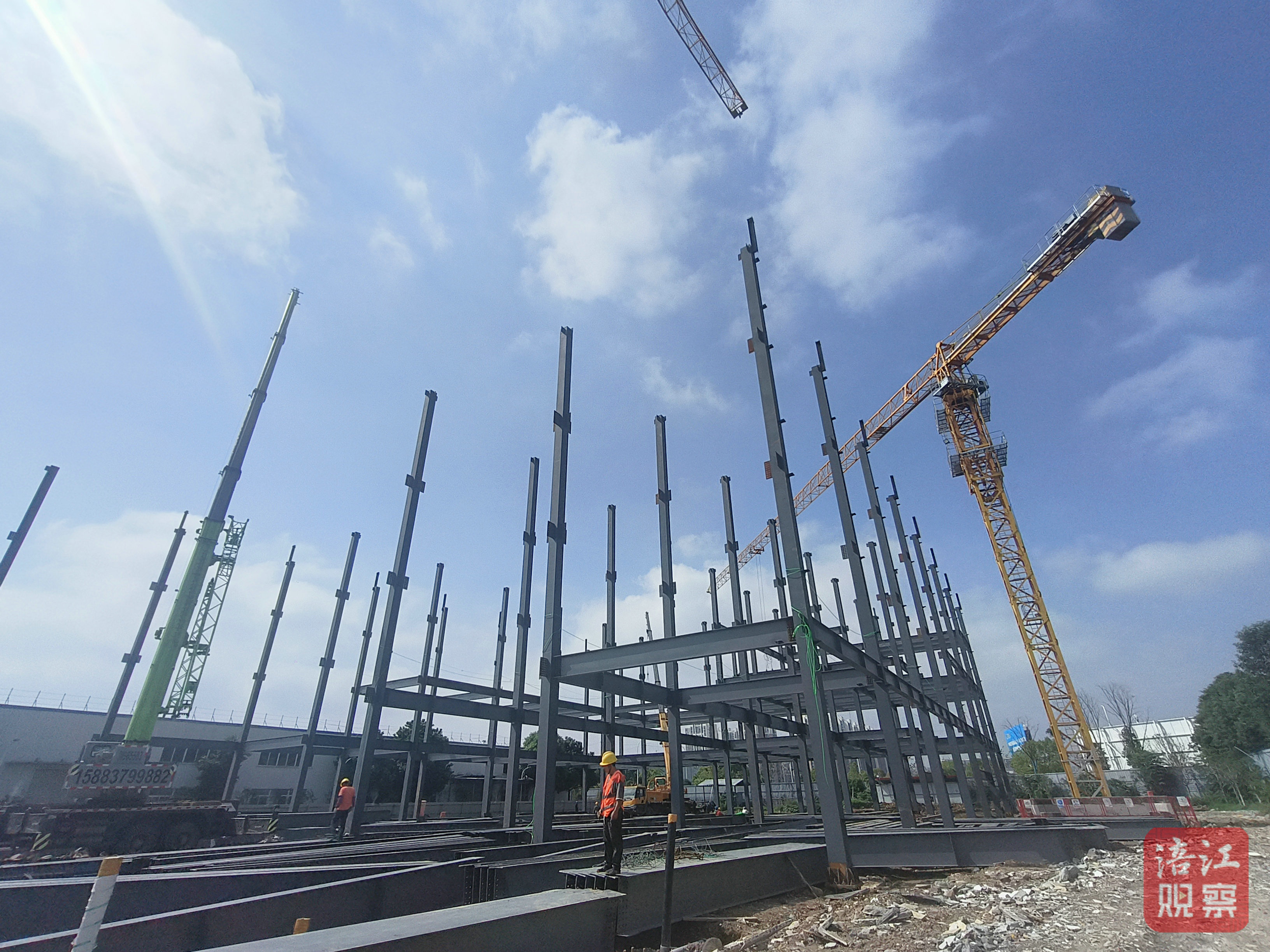 “目前,我們正在進(jìn)行鋼構(gòu)的安裝,鋼柱和鋼梁的安裝都在同步推進(jìn),鋼梁部分已經(jīng)施工到三四層了。”施工現(xiàn)場(chǎng)負(fù)責(zé)人廖鋒指著正在“生長(zhǎng)”的廠房向記者介紹,“右邊的綜合辦公樓主體樓板已經(jīng)完成,二樓以上準(zhǔn)備砌磚,底樓即將打墊層,我們正全力沖刺,確保今年12月底能夠如期完工。”