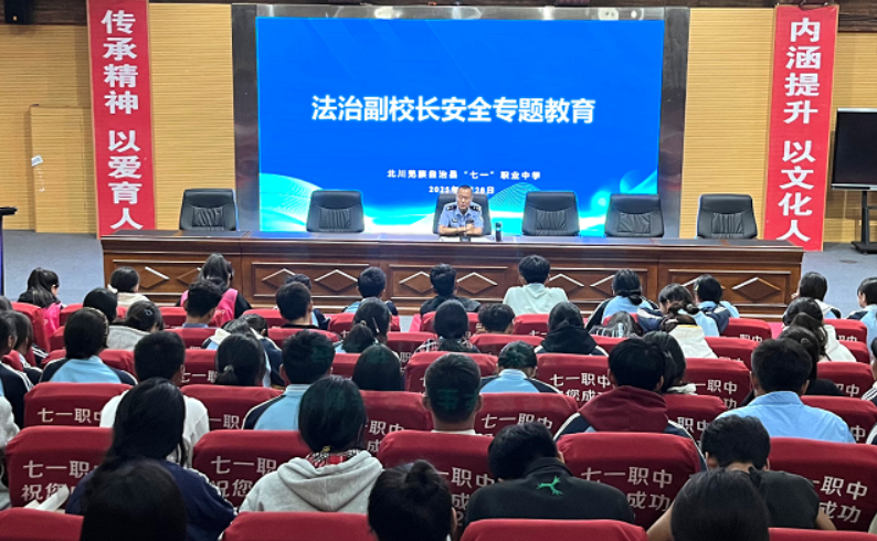 綿陽新聞網(wǎng)訊 為了進一步擰緊學生 “法治思想弦”、筑牢 “安全防護墻”,營造平安和諧的校園氛圍,9月28日,北川羌族自治縣“七一”職業(yè)中學在學術(shù)報告廳開展了以“青春有法,行穩(wěn)致遠”為主題的學生安全法治專題講座活動。本次講座由永昌派出所所長、該校法治副校長何偉同志主講,部分學生及班主任代表參加活動。