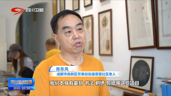 成都市高新區(qū)芳草街街道蓓蕾社區(qū)老人 陳東風(fēng):我們本身有篆刻、書法、刺繡、剪紙等這些項目,很受大家歡迎,這一次國慶(中秋)長假,每天的文創(chuàng)產(chǎn)品基本是全部賣光了。