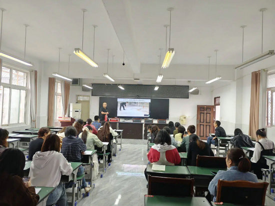 接著,來(lái)自四川省公安消防安全技術(shù)服務(wù)中心的余朋警官為全校教師開展了消防安全知識(shí)培訓(xùn)。余教官通過(guò)一些駭人聽聞的案件中,為大家講述了火災(zāi)的危害性,又從如何預(yù)防火災(zāi),遇到火災(zāi)后如何逃生,如何報(bào)警,如何求救等為大家上了一堂生動(dòng)的消防安全課。余教官還語(yǔ)重心長(zhǎng)地告誡大家,無(wú)論是家中,還是單位上,以及車上,配備必要的滅火器材尤其重要,對(duì)消防器材的使用進(jìn)行了詳細(xì)講解。