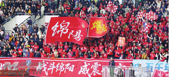 綿陽(yáng)隊(duì)球迷揮舞旗幟吶喊助威