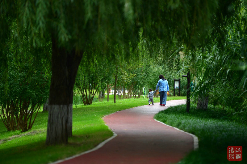 市民們或三五成群悠閑漫步,或結(jié)伴騎行慢跑,孩子們在家長的呵護下,盡情地在城市綠肺、天然氧吧中自由地玩耍。