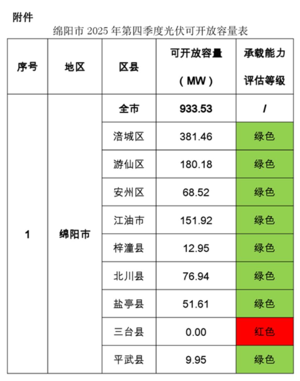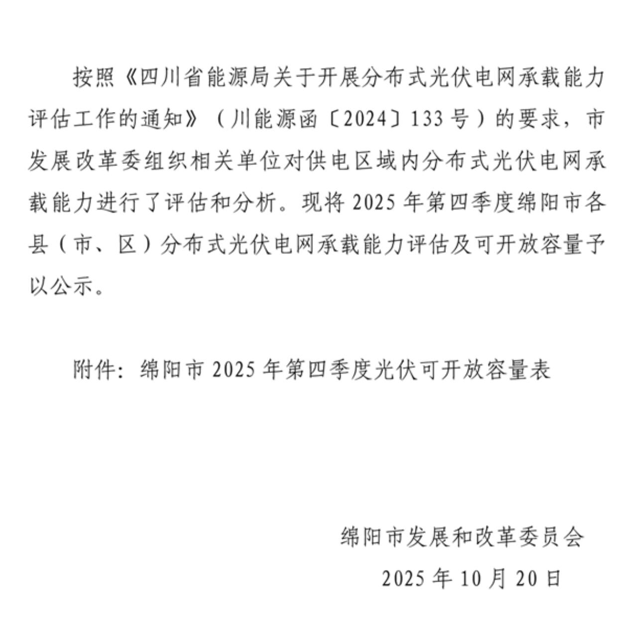 綿陽(yáng)市發(fā)展和改革委員會(huì)關(guān)于對(duì)2025年第四季度分布式光伏電網(wǎng)承載能力評(píng)估及可開(kāi)放容量的公示
