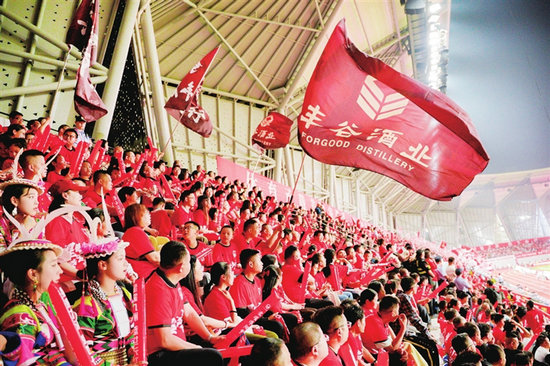 球迷為九洲長(zhǎng)虹隊(duì)吶喊助威