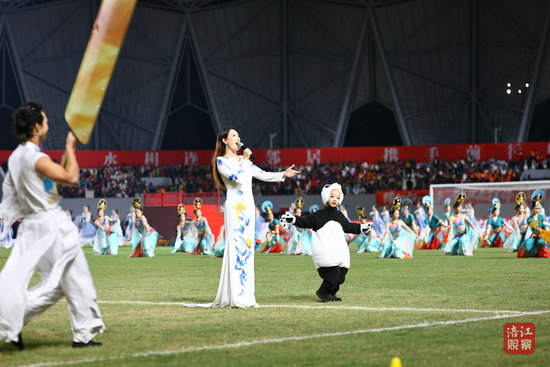 比賽結(jié)束后,近300名演職人員與球員一起和現(xiàn)場(chǎng)觀眾進(jìn)行表演互動(dòng),在歌曲《相親相愛(ài)》的溫暖旋律中,為本場(chǎng)比賽畫上圓滿句號(hào)。