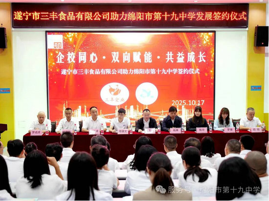 綿陽新聞網(wǎng)訊 10月17日,綿陽市第十九中學(xué)在學(xué)校會議室舉行了以“企校同心?雙向賦能?共益成長”為主題的簽約儀式。
