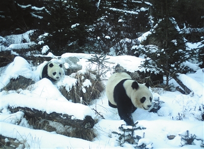 大熊貓國(guó)家公園北川片區(qū),紅外相機(jī)拍攝到大熊貓母子。