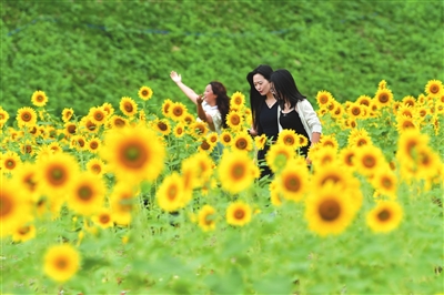 金秋時(shí)節(jié),游仙區(qū)石馬鎮(zhèn)紅巖水電站旁的連片向日葵生機(jī)盎然,吸引眾多游客前來(lái)觀賞打卡。