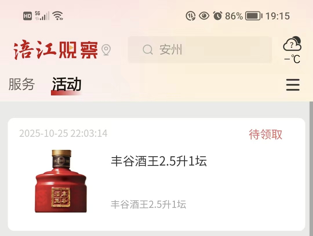 家住三臺縣的宋進便是一位幸運兒。賽前,他在競猜活動中選擇了綿陽隊獲勝。比賽結束后,他迅速參與抽獎環(huán)節(jié),竟抽中了2.5L裝的豐谷酒王大獎。
