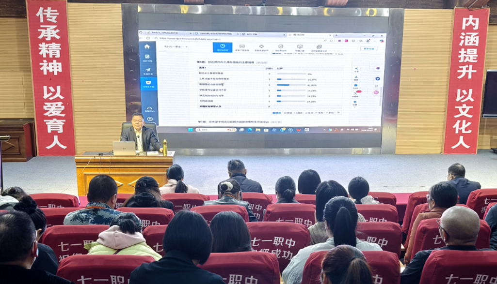 綿陽新聞網(wǎng)訊 為了積極響應(yīng)教育數(shù)字化轉(zhuǎn)型號(hào)召,切實(shí)提升教師人工智能應(yīng)用能力與信息素養(yǎng),10 月23 日,北川羌族自治縣“七一”職業(yè)中學(xué)特邀綿陽職業(yè)技術(shù)學(xué)院馮德勇副教授,為全校教師帶來《AI教師生產(chǎn)力倍增計(jì)劃:60分鐘極速破局》的專題講座,以 “理論+實(shí)操” 的沉浸式培訓(xùn),助力教師解鎖人機(jī)協(xié)同教學(xué)新范式。