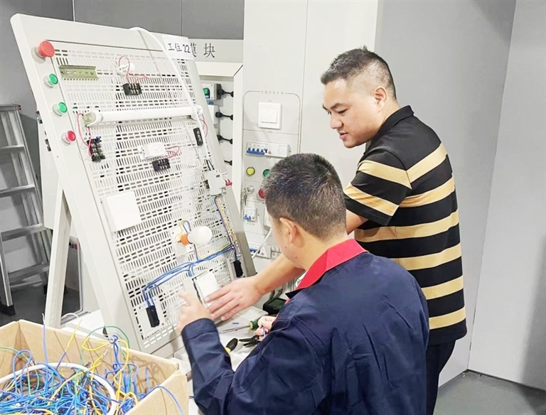10月27日,秋意漫進四川九洲技師學(xué)院的實驗室。白熾燈光透過窗,落在電子技術(shù)應(yīng)用專業(yè)大二學(xué)生莫郎姐的指尖——有些青澀的雙手,此刻正穩(wěn)穩(wěn)操作著器件,眉宇間藏著日復(fù)一日練習(xí)沉淀下的堅定。